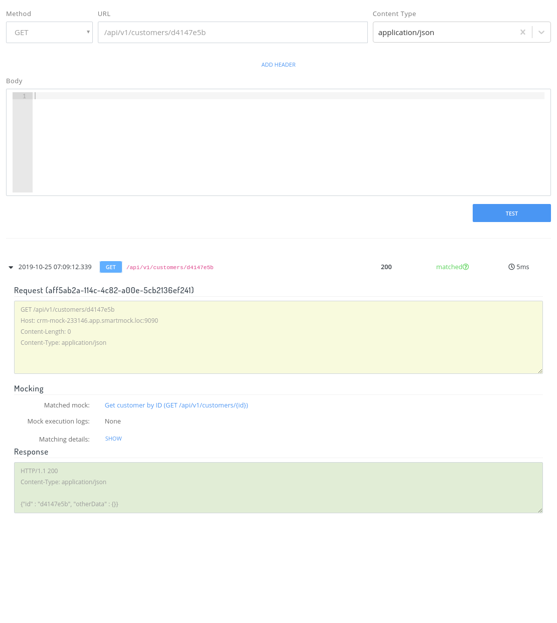 - matched - One mock was matched to the request. Go to the Matching details section to check detailed information about which mock was matched and why.